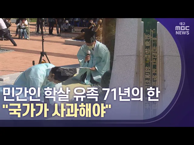 ◀앵커▶대구 10월항쟁 75주기와 한국전쟁 전후 민간인 학살 희생자 71주기를 맞아 합동 위령제가 열렸습니다.불법적인 국가 폭력의 피해자면서도 오랜 세월 주위의 편견과 연좌제에 시달렸던 유족들은 이제는 국가가 공식 사과하고 명예를 회복해 줄 것을 호소했습니다.도건협 기잡니다.◀도건협 기자▶71년 전, 청도 전매서에...