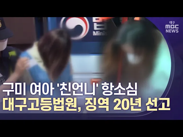 ◀앵커▶경북 구미 한 빌라에서 3살배기 여자 아이가 방치돼 숨진 사건, 기억하실 겁니다.당시 아이를 홀로 남겨두고 떠났던 20대 여성은 아이의 친언니로 드러났는데, 오늘 열린 항소심에서 1심과 같은 징역 20년이 선고됐습니다.권윤수 기자가 보도합니다.◀권윤수 기자▶지난해 경북 구미 빌라에 방치돼 숨진 3살 아이의 친...