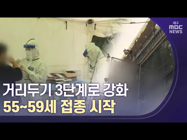 ◀앵커▶ 대구를 비롯한 비수도권 코로나19 기세가 갈수록 커지고 있습니다. 내일부터 거리두기가 3단계로 높아지고 방역 수칙은 강화됩니다.백신 접종은 55세부터 59세까지 확대되며 속도를 내고 있습니다.조재한 기자가 보도합니다.◀조재한▶기자55살에서 59살까지 장년층 백신 접종이 시작됐습니다.대구는 대상자 17만 4천...