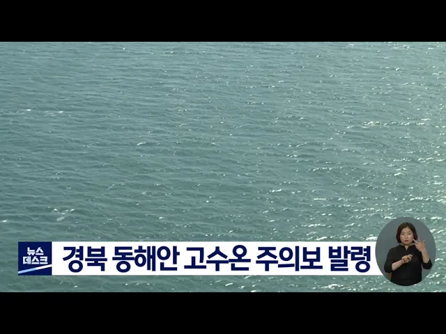 국립수산과학원이 부산 청사포에서 경북 울진 연안해역까지 고수온 주의보를 확대발령했습니다.지난 24일 기준으로 수온이 주의보 발령기준인 섭씨 28도까지 올라갈 것으로 예측된 데 따른 것입니다.경북도는 실시간 수온 관측 모니터링 시스템과 어업지도선 예찰을 통해 수온 정보를 양식 어업인과 관계기관에 문자로 알리...