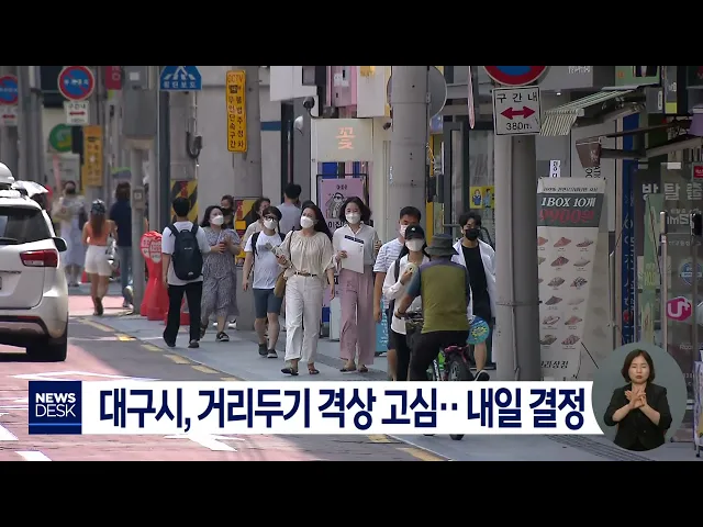 코로나19 확진자가 계속 늘면서 대구시가 사회적 거리두기 단계 격상을 두고 고심하고 있습니다. 대구의 거리두기 3단계 격상 기준은 일주일 동안 하루 평균 신규 확진자가 49명 이상 발생할 때로, 감염 재생산지수와 병상 가동률 등을 종합해서 정합니다. 내일 문재인 대통령이 주재하는 중대본 회의가 있을 예정이어서, ...