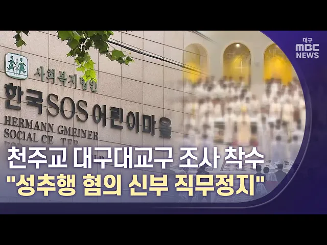 ◀앵커▶사회복지법인 대표이사인 A 신부가 직원들을 성추행한 혐의로 경찰 수사를 받는다는 소식 저희가 어제 단독으로 보도해드렸는데요.천주교 대구대교구가 자체 진상조사에 들어갔습니다. A 신부는 직무 정지될 예정입니다.양관희 기자가 보도합니다.◀양관희▶기자천주교 대구대교구가 MBC 보도 뒤, 성추행 혐의를 받는 A...