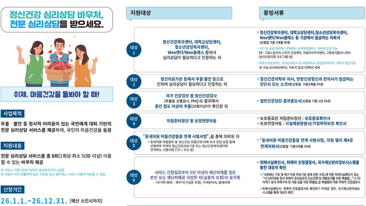 "2026년에도 정신건강 심리 상담 이용권 사업을 합니다."