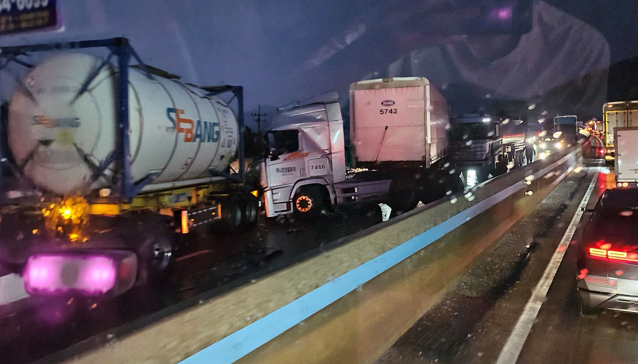 10일 오전 6시 10분쯤 남상주 나들목 인근 영덕방향 서산영덕고속도로에서 4중 추돌 사고가 난 데 이어 인근에서 다시 5중 추돌사고가 나는 등 다중 추돌 사고가 잇따랐습니다.또 6시 35분쯤 청주 방향 서산영덕고속도로에서 SUV가 트럭을 추돌한 뒤 가드레일과 충돌하면서 불이 나 모두 탔습니다.경찰은 현재까지 이 일대 ...