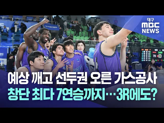 ◀앵커▶프로농구 대구 한국가스공사가 선두권인 3위로 2라운드를 마감했습니다.개막 전 하위권으로 분류됐었지만 선전을 거듭하고 있는데요.3라운드에서도 상승세를 이어갈 수 있을지, 석원 기자가 전해드립니다.◀기자▶창단 최다인 7연승까지 질주했던 한국가스공사.긴 연승의 여파로 2라운드 입구에서 3연패에 빠지기도 했...