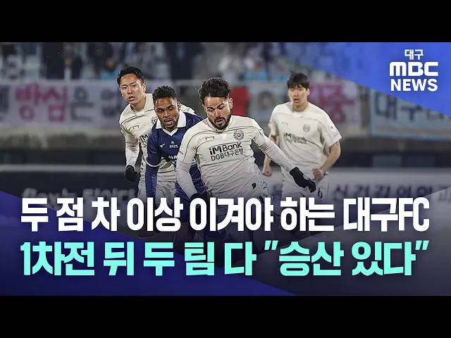 ◀앵커▶11월 28일에 펼쳐진 K리그 승강 플레이오프 1차전은 예상을 뛰어넘는 난타전 끝에 충남아산의 승리로 끝났습니다.전반에만 3골을 내준 대구FC는 경기 막판 추격을 이어가며 한 점 차 패배로 2차전에 대한 희망의 불씨를 남겼는데요.2차전에 대해서 양 팀 사령탑은 모두 팀에 도움이 될 요소가 있다며 기대를 보였습니...
