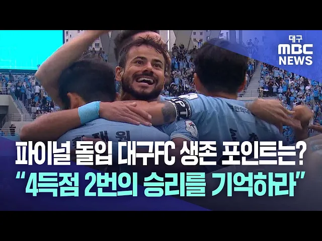 ◀앵커▶파이널라운드를 앞둔 대구FC가 정규리그 막판, 4경기 연속 무패를 기록하면서 무려 2번의 4득점 경기를 펼쳐 보였습니다.시즌 끝자락까지 치열하게 이어질 강등권 탈출 순위 싸움에서는 이번에 보여준 다득점 경기가 주요하게 작용할 수 있다는 분석이 나오는데요. 석원 기자가 파이널 라운드 생존 포인트를 정리했습...