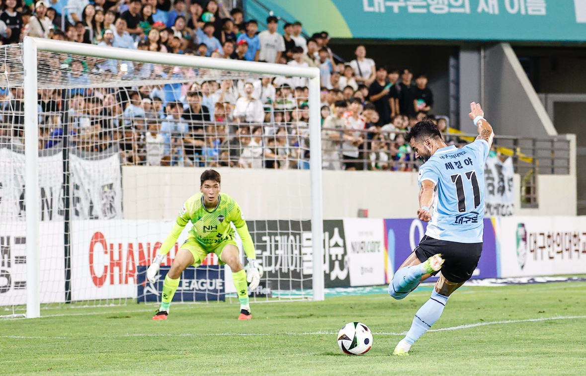 선취득점 세징야, 대구FC 통산 1000호 골…후반 3-0 리드