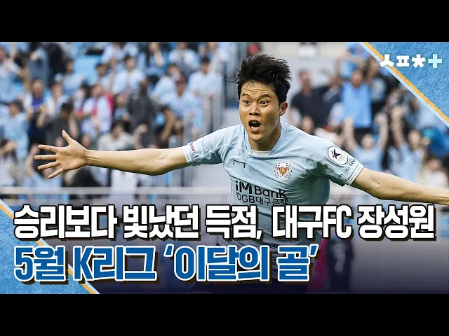 K리그 통산 2골에 그치는 대구FC 측면 수비수 장성원이 '5월 이달의 골' 수상 선수로 선정됐습니다.K리그1 10라운드부터 15라운드까지 펼쳐진 6경기를 대상으로 한 5월 이달의 골 후보에는 대구FC 장성원과 함께 강원FC 양민혁이 이름을 올렸습니다.장성원은 지난달 26일 펼쳐진 강원과의 14라운드 홈 경기에서 0-1로 끌려...