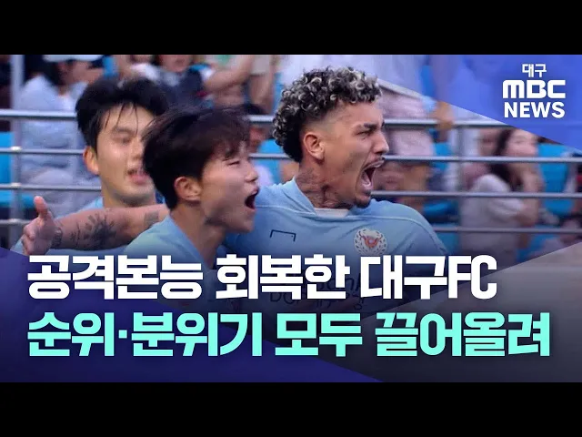 ◀앵커▶대전 원정 패배와 함께 리그 최하위로 추락하며 A매치 휴식기를 보냈던 대구FC가 6월16일 펼쳐진 하나은행 K리그1 2024 제주 유나이티드와의 17라운드 홈 경기에서 승리와 함께 꼴찌 탈출에 성공했습니다.3연패 뒤 거둔 값진 승리의 원동력은 공격을 중점에 두겠다는 박창현호의 색이 다시 살아나면서 가능했다고 하...