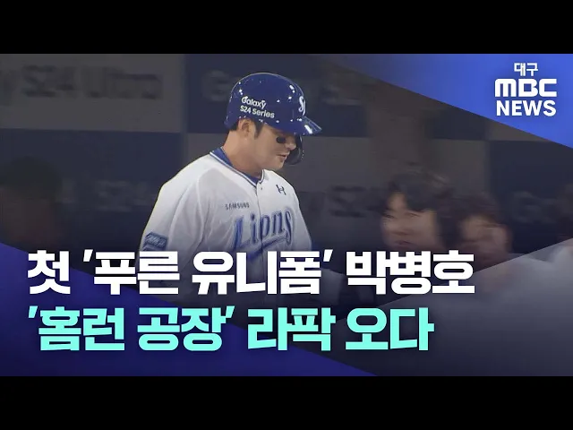 ◀앵커▶KBO리그 통산 3위에 해당하는 384개의 홈런을 쏘아 올린 거포 박병호가 삼성의 푸른 유니폼을 입고 대구삼성라이온즈파크에서 5월 29일 첫 경기를 치렀습니다.갑작스러운 트레이드 발표부터 전격적인 팀 합류로 관심을 모았던 박병호는 첫날부터 홈런을 터뜨리며 본인의 존재감을 보였는데요.그 현장을 석원 기자가 ...