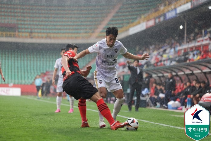 빗속 펼쳐진 1·2위 맞대결‥무득점 무승부, 2위 지킨 김천상무