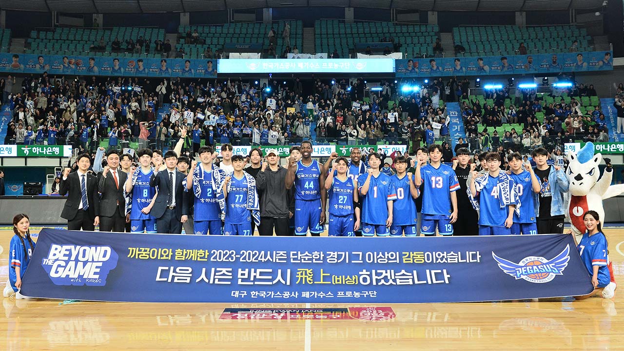 무려 11경기 동안 연패를 안겼던 상대인 울산현대모비스에 승리한 대구한국가스공사가 창단 이후 첫 전 구단 상대 승리라는 기록을 쓰며 시즌 마지막 홈경기를 마무리했습니다.3월 26일 저녁 대구체육관에서 펼쳐진 2023-24 정관장 프로농구 현대모비스와의 시즌 마지막 맞대결에서 한국가스공사는 선수들의 고른 활약과 함...
