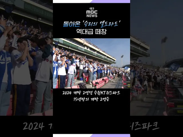 ◀앵커▶지난 주말 개막 이후 2경기를 치렀을 뿐이지만, 삼성라이온즈 팬들에게는 여러모로 의미 있는 수원 원정 2연전이었습니다.무려 15년 만에 삼성이 개막 2연전을 모두 쓸어 담은 건데요.승리만큼이나 짜릿했던 건 경기 후반부 삼성 팬들이 다 같이 불렀던 돌아온 응원가, '엘도라도'였습니다. 석원 기자가 그 현장의 뜨...