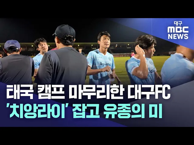 ◀앵커▶태국으로 전지훈련을 떠났던 대구FC가 1월 31일 밤 귀국길에 오릅니다.약 3주간 진행된 전지훈련의 마지막은 캠프가 펼쳐졌던 치앙라이의 연고 팀, 치앙라이 유나이티드와 공식 친선경기였는데요.깔끔한 승리로 1차 태국 캠프를 마친 대구, 특히 젊은 선수들의 활약은 인상적이었습니다.태국 치앙라이 현지에서 석원 ...