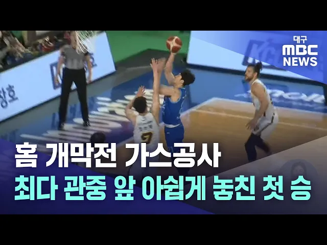 ◀앵커▶지난주 이미 울산 원정으로 2023-2024 정관장 프로농구 정규리그를 시작한 대구한국가스공사가 28일 대구실내체육관에서 홈 개막전과 함께 대구 팬들과 첫 만남의 시간을 가졌습니다.시즌 첫 승을 노렸던 개막전, 아쉽게 승리는놓쳤지만, 가스공사 창단 이후 최다 관중과 함께한 개막전은 새 역사로 남겨졌는데요. 그...