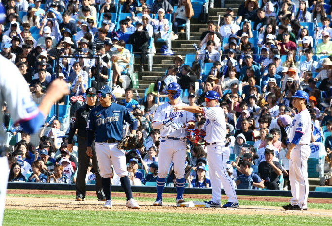 '만원관중' 승리한 삼성‥'아빠사자데이' 강민호-류지혁 맹활약