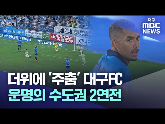 ◀앵커▶프로축구 대구 FC가 부진한 모습을 보이고 있습니다. 7, 8월에 약했던 대구지만, 마지막 승리가 한 달 전 제주 원정일만큼 최근 흐름은 좋지 않은데요,다가오는 수도권 원정 2연전이 순위 싸움에 중요한 승부처가 될 전망입니다. 석원 기자입니다. ◀기자▶시즌 상대 전적에서 2패를 당했던 선두 울산은 만만치 않았습...
