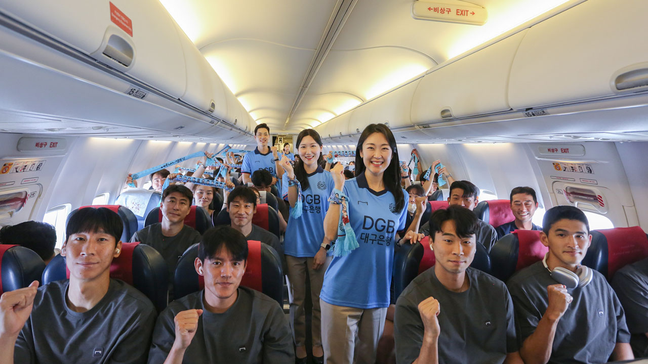 제주 원정 떠난 대구FC···원정길 기내 응원 펼쳐