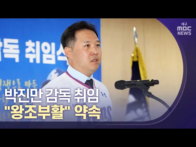 ◀앵커▶2023년 시즌부터 삼성라이온즈를 이끌 박진만 감독이 공식 취임했습니다. 감독 대행으로 가능성을 보인 박 감독은 선수들의 정신력과 자세를 강조하며 우승을 목표로 삼는다고 밝혔습니다.석원 기자입니다. ◀기자▶감독 대행으로 시즌 막판 좋은 모습을 보여준 박진만 감독이 삼성의 16대 사령탑으로 취임했습니다.다...