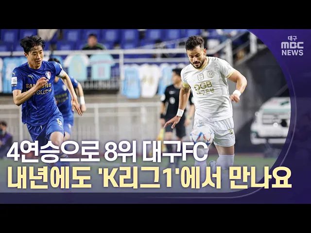 ◀앵커▶한때 강등 위기에 몰렸던 프로축구 대구FC가 최근 엄청난 상승세를 보이며 사실상 1부 리그에 남게 됐습니다.12일 저녁 원정 경기였죠? 강등권 경쟁팀인 수원삼성에 한 점차 짜릿한 승리를 거두며 8위로 올라섰는데요, 대구FC, 반전의 원동력이 된 4연승 과정을 석원 기자가 정리했습니다. ◀기자▶시즌 내내 쉽지 않...