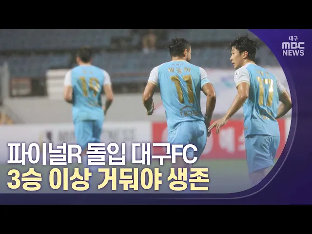 ◀앵커▶정규리그를 마치고 파이널라운드에 돌입한 대구FC가 DGB대구은행파크 시대 처음으로 파이널B 그룹에 속했습니다.2021년까지 AFC챔피언스리그 진출에 도전한 대구는 이번 시즌 강등 경쟁을 펼쳐야 하는 잔인한 처지에 놓였는데요.다가오는 파이널라운드에서는 대구FC가 어떤 일정을 앞뒀고 어떤 모습을 보여줄지 스포...