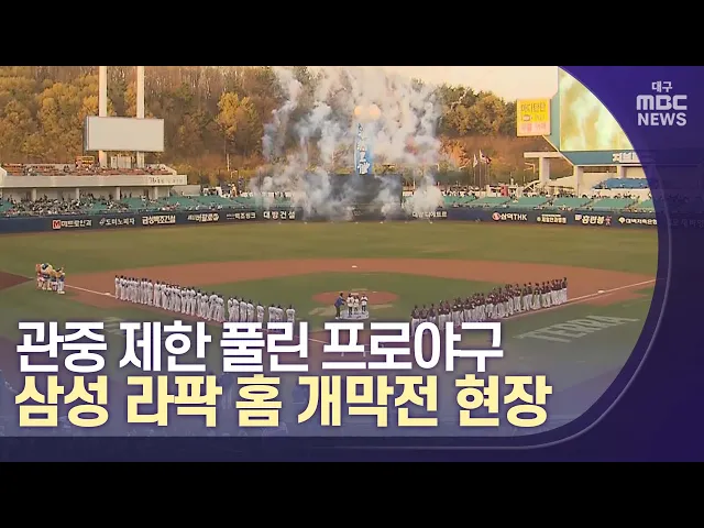 ◀앵커▶삼성 라이온즈가 키움을 상대로 2022 시즌 프로야구 홈 개막전을 대구삼성라이온즈 파크에서 지금 펼치고 있습니다.특히, 올해 프로야구는 코로나 팬데믹 이후 3년 만에 관중 제한 없이 열리고 있는데요.현장에서 마음껏 프로야구를 즐길 수 있게 돼, 야구팬들의 기대도 큽니다. 야구장에 나가 있는 취재기자 연결합...