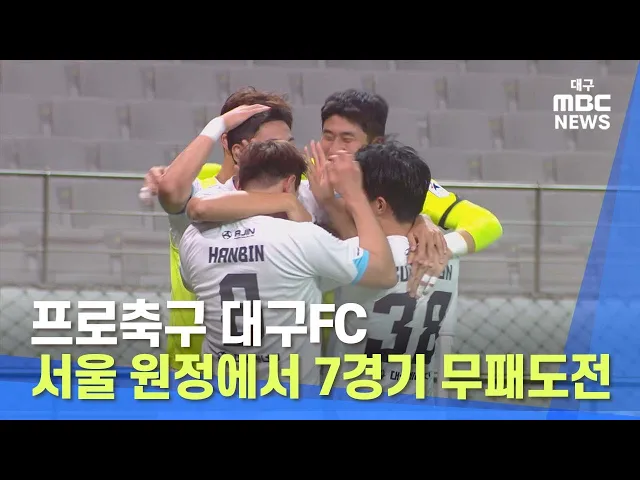 프로축구 대구FC가 FC서울을 상대로 한 원정경기에서 1대1 무승부를 기록했습니다. 어제(3일) 저녁 서울월드컵경기장에서 펼쳐진 FC서울과의 K리그 원 33라운드에서 대구는 전반 서울에게 선취골을 내줬지만, 후반전 시작과 동시에 황순민의 크로스를 받은 정치인이 동점골을 기록하며 1대 1, 무승부로 경기를 마무리했습니...