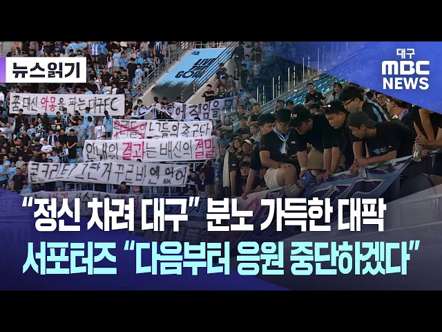 ◀앵커▶어느덧 80일을 훌쩍 넘겼습니다.바로, 대구FC의 승리 소식 이야기인데요. 7월 27일 펼쳐진 하나은행 K리그1 2025 포항스틸러스와의 24라운드에서 진 대구, 13경기째 승리하지 못하자, 팬들은 경기가 끝나고도 경기장에 남아 극에 달한 분노를 표출했습니다.이런 상황에서 대구의 다음 일정은 FC바르셀로나와의 친선경...