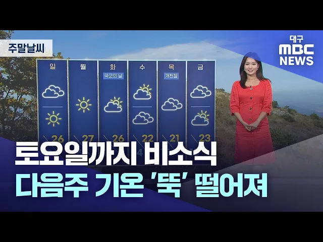 나무들이 알록달록 단풍 옷을 입기에 아직은 평년보다 기온이 높습니다.오늘 아침 대구와 안동, 성주의 기온 20도, 포항은 22도로 어제보다 높게 출발하는데요.낮 기온은 안동 27도, 대구 28도, 성주는 29도까지 오르겠습니다.반면 경북동해안 지역은 동풍의 영향을 받아 포항의 낮 기온 25도에 그치겠고요.당분간 내륙을 ...
