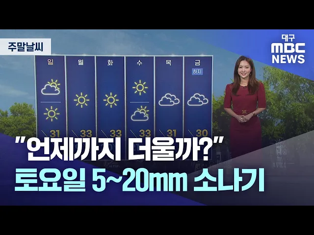 대구는 닷새째 폭염주의보가 발효 중인 가운데 구미, 영천 등 경북 11개 시군에도 폭염주의보가 내려져 있습니다.6월 14일 금요일 오늘 낮 최고 기온은 대구 35.1도, 경주 35.2도 등을 기록해 한여름 더위를 기록했습니다.토요일인 내일은 낮부터 저녁 사이 대구경북 전역에서 5에서 40mm의 소나기가 쏟아지겠습니다.토요일...