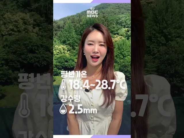 6월 2주 차 대구·경북 '날씨 체크' 시작합니다.이번 주 한여름보다 더 더운 날씨가 예상되는데요. 평년 기온을 훌쩍 넘는 기온에 비 소식 없이 맑은 날씨까지 이어져 햇볕도 강하겠습니다. 우리 지역 6월 2주 차 평년 최저 기온 18.4도, 평년 최고 기온 28.7도였습니다.이번 주 월요일 '단오'를 시작으로 낮에는 계속해서 ...
