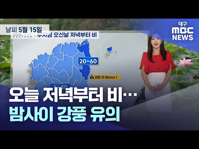 부처님 오신날인 오늘 나들이 계획 있으시다면 우산을 꼭 챙기셔야겠습니다. 오전까지는 맑겠는데요. 오늘 늦은 오후부터 경북 서부 및 북부 내륙을 중심으로 비가 내리기 시작해 저녁에는 대구와 경북 대부분 지역에서 비가 내리겠습니다. 내일까지 경북 북동 산지와 경북 북부 동해안에는 20~60mm, 그 밖의 대구와 경북에...