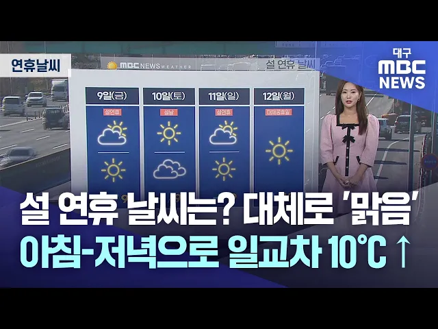 이번 주 잦은 비 소식과 함께 하늘빛이 흐렸는데요. 오늘 드디어 맑은 하늘이 드러났습니다. 당분간 대체로 맑은 가운데 큰 추위도 없겠습니다. 다만 낮에 오른 기온이 밤사이 내려가 내륙을 중심으로 안개가 예상되는데요. 이른 아침 귀성길에 나서는 분들 모두 아침 안개에 유의하시기를 바랍니다. 내일부터 본격적인 설 ...