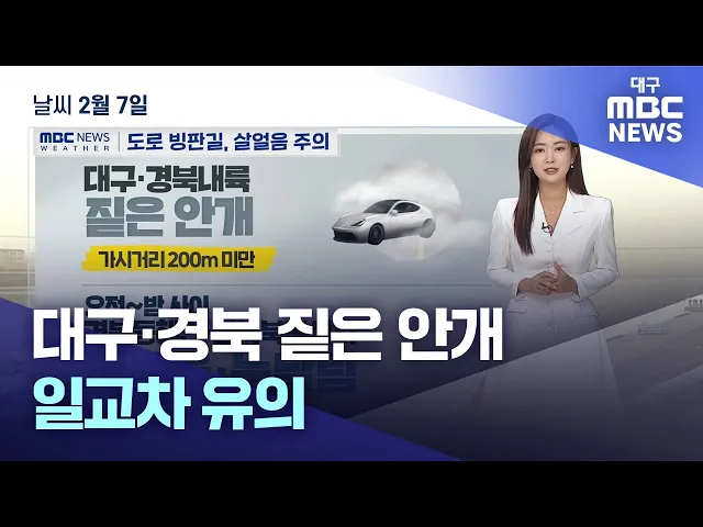 2월 7일 수요일 대구와 경북 지역은 대체로 흐린 가운데 큰 추위는 없겠습니다.아침 최저 기온은 대구 0.5도, 영천 영하 2.2도, 문경 영하 2.4도 등을 보였습니다.수요일 낮 최고 기온은 대구와 포항 7도, 안동 6도 등 4도에서 8도의 분포를 보이겠습니다.경북 동해안과 북동 산지에는 빗방울이 떨어지거나 눈이 날리는 곳...
