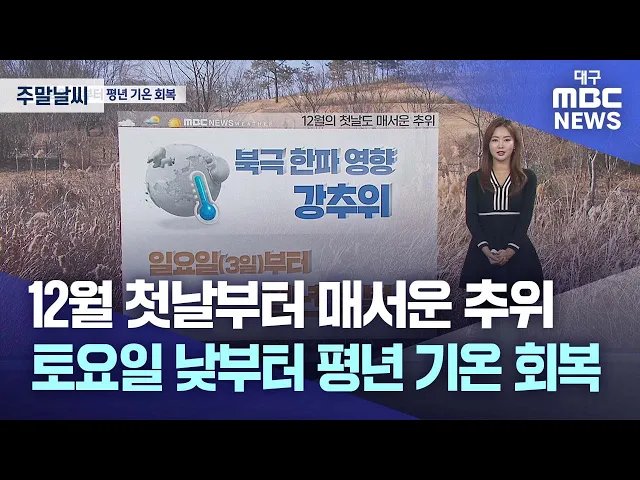 겨울의 시작부터 추위가 기승입니다.오늘 아침에도 대구와 경북 대부분 지역에서 기온이 영하로 뚝 떨어졌는데요.계속해서 바람도 약간 강하게 불어 체감온도는 더 낮게 느껴지겠고요.낮에도 5도 안팎 머물며 종일 기온 주춤하겠습니다.내일까지 평년보다 낮은 기온 이어지며 춥겠고요.토요일 낮부터 추위는 조금씩 풀리겠...