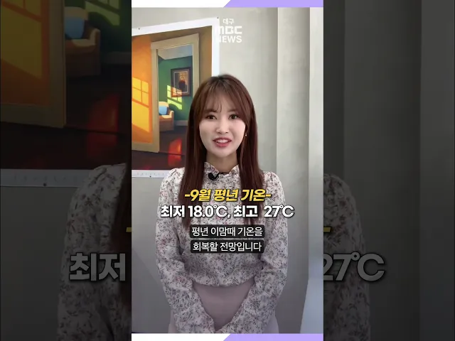 여름이 끝까지 심술을 부리고 있습니다.아침과 저녁에는 조금 시원한 듯싶지만, 낮에는 계속 30도를 넘나드는 낮 더위가 나타났는데요. 이번 주 월요일 대구의 낮 최고 기온은 32.8도, 화요일은 29.5도를 기록했고요. 9월이 반이나 지났지만 여전히 평년 기온을 웃도는 기온이 이어졌습니다. ▶ 9월 평년 최저 기온 18.0℃, ...