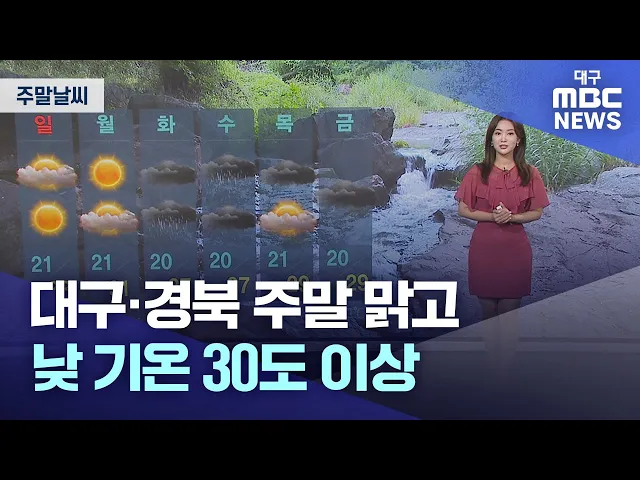 대구와 경북 지역은 주말에도 낮 기온이 30도를 웃돌며 덥겠습니다.금요일인 6월 16일 낮 최고 기온은 대구 32.5도, 경주와 성주 32.5도 등 25도에서 33도로 전날보다 3~4도가량 높았습니다.토요일인 17일은 대체로 맑겠고 낮 최고 기온은 대구 34도 등 29도에서 35도로 더 덥겠습니다.대구지방기상청은 "체감온도가 크게 ...