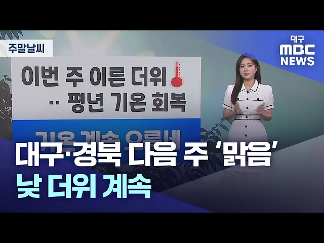 이번 주는 30도가 넘는 이른 더위가 찾아왔습니다.갑자기 쑥 올라간 기온에 전국이 뜨거웠는데요. 실제로 대구와 경북 대부분 지역에서 낮 최고 기온이 33도까지 올랐고요. 아직 5월이지만 7월 수준의 기온을 보이며 자외선 지수도 '매우 높음' 수준까지 치솟았습니다. 그래도 목요일부터 비가 내리며 기온은 다시 평년 수...