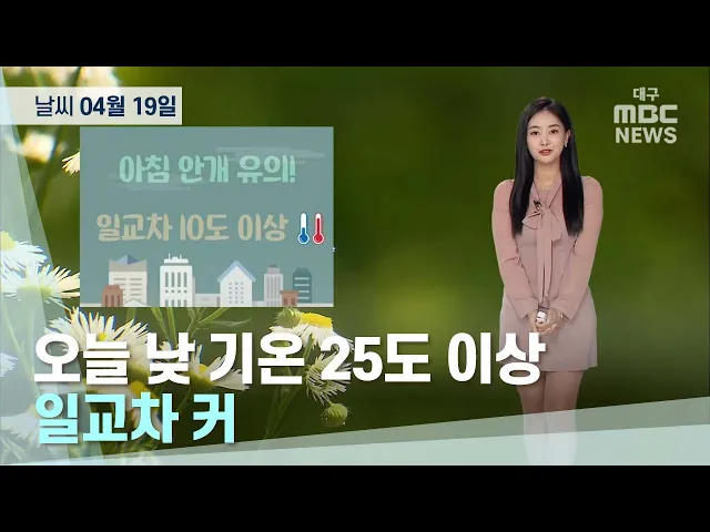 봄비가 촉촉하게 내리더니 오늘은 초여름 날씨가 찾아왔습니다. 현재 대구의 기온은 14도로 시작하는데요. 낮부터는 기온이 껑충 오르겠습니다. 어제 대구의 낮 최고 기온은 20.7도, 오늘은 기온이 5도 이상 올라 26도 예상되고요. 아침보다도 10도 이상 기온이 오르겠습니다. 낮에도 반소매 차림이 어색하지 않겠는데요. ...