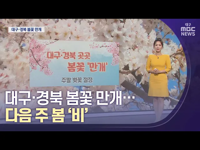 대구는 겨울에도 좀처럼 눈을 보기 어렵지만, 따뜻한 봄에는 이렇게 하얀 벚꽃 잎이 눈처럼 흩날립니다.평년보다 포근한 날씨 덕에 일찍 개화를 시작한 대구와 경북의 봄꽃들이 이제 대부분 만개했는데요. 파란 하늘을 도화지 삼아 부드러운 봄바람을 타고 꽃잎 도장을 찍는 아름다운 모습에 기분까지 좋아지는 요즘입니다....