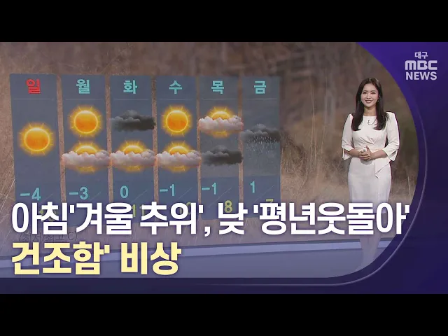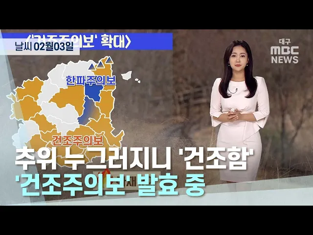 2월 4일은 봄을 맞이하는 절기 ‘입춘’입니다.‘입춘’ 무렵이면 항상 늦추위가 찾아왔는데요. 다행히 다음 주 큰 추위 없이 아침 기온만 신경 쓰시면 될 것 같습니다. 다만 ‘건조함’이 비상입니다. 경북 동해안 지역은 15일 넘게 ‘건조특보’ 이어지고 있고요. 대구와 경북 대부분 지역으로도 ‘건조주의보’가 확대된 상태입니...