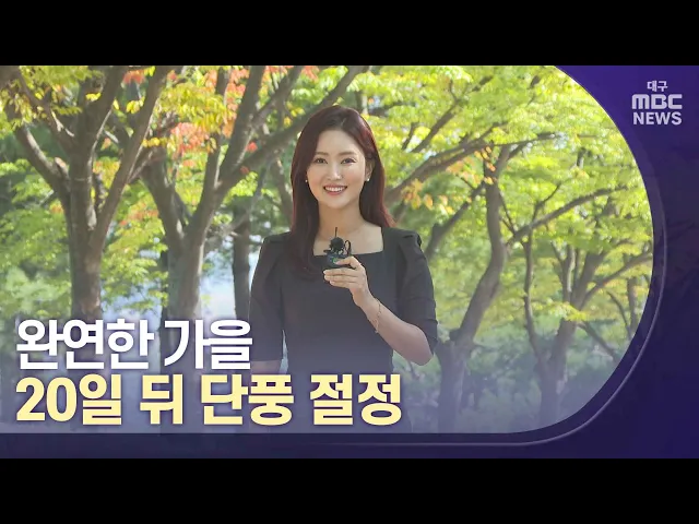 ◀앵커▶이번 주는 파란 하늘과 선선한 공기에 완연한 가을 날씨를 보였습니다.날이 선선해지면서 단풍도 조금씩 물들기 시작했는데요, 팔공산은 10월 20일쯤 첫 단풍이 기록될 것으로 예상됩니다.다음 주에는 화요일 비가 내리고 기온이 더 내려갈 전망입니다. 자세한 날씨, 유하경 기상캐스터가 전해드립니다. ◀기상캐스터▶...