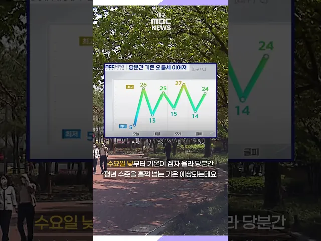 하루 사이 기온이 껑충 올라갔습니다.어제 대구의 낮 최고 기온은 26.8도까지 올라 다소 더웠는데요.오늘 아침 기온도 대구 13도, 안동과 김천 8도, 포항 15도로 대부분 지역에서 어제보다 5도 이상 올랐습니다.낮 기온은 오늘도 최고 27도 안팎까지 올라 반소매 차림이 어색하지 않겠는데요.다만 낮과 밤 기온 차가 커 나...