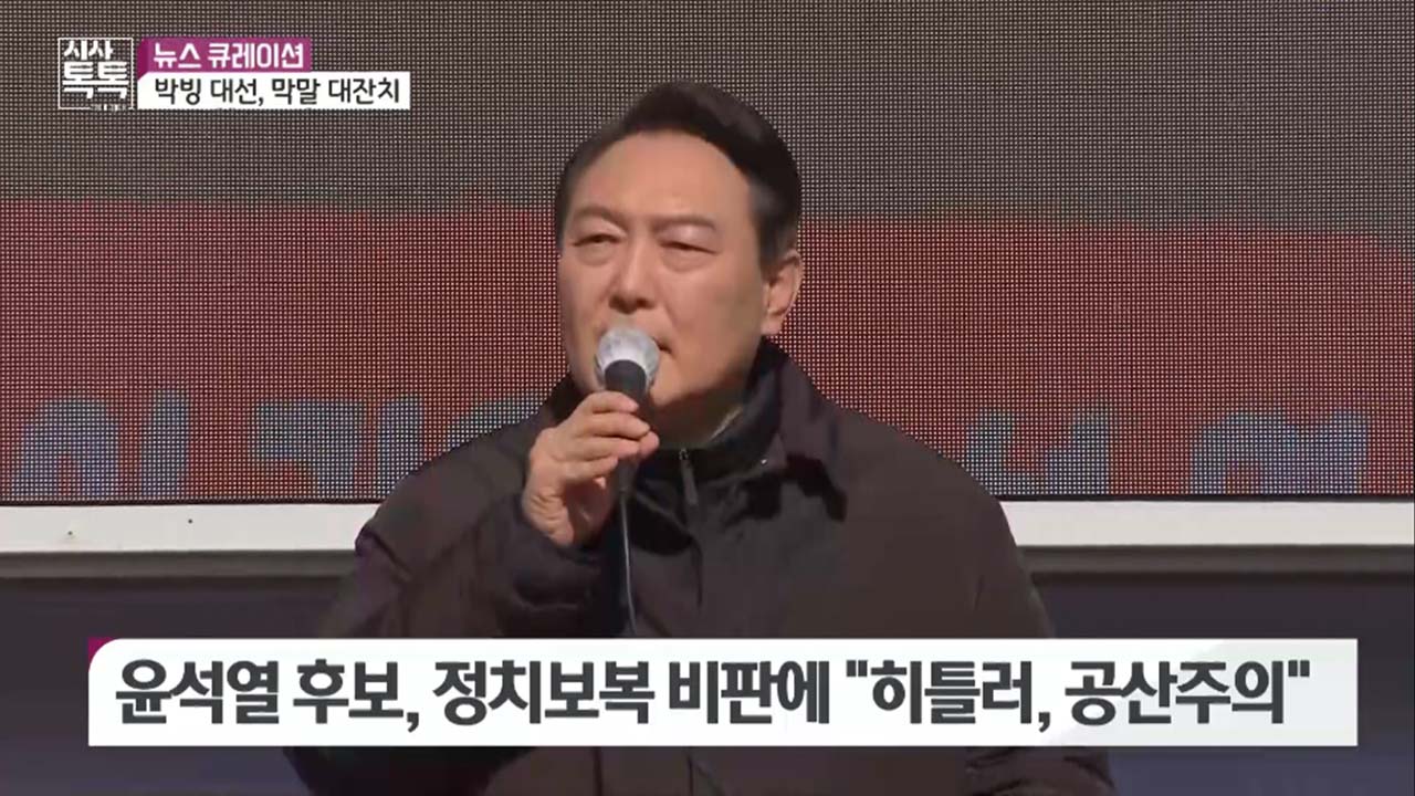 선거운동 초반, 국민의힘 윤석열 후보는 자신의 적폐수사, 정권심판 발언을 정치보복이라고 비판한 청와대와 여당을 히틀러, 소련 공산주의자에 빗댔습니다.