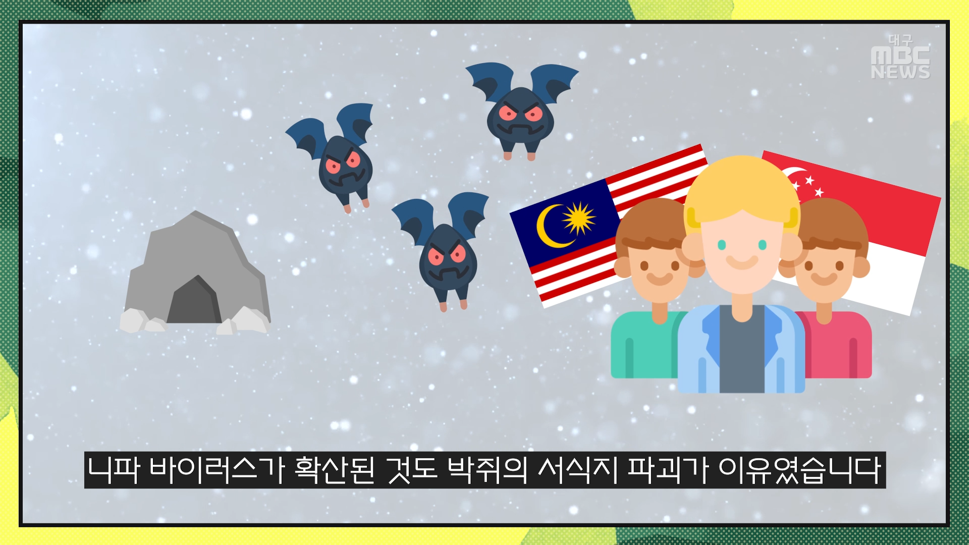 박쥐의 서식지가 파괴 되면서 인간과의 접촉이 잦아지게 되었습니다. 실제로 1990년대 후반 말레이시아와 싱가포르에서 니파 바이러스가 확산된 것도 박쥐의 서식지 파괴가 원인이었습니다. 박쥐는 인간과 같은 포유류이기 때문에 종간 장벽이 낮아 상대적으로 감염이 일어날 가능성이 높습니다. 전 세계 포유동물 4,600여종 중 1200종이 박쥐에 달할 정도로 생물학적 다양성도 높아 바이러스 역시 보다 많이 존재합니다.