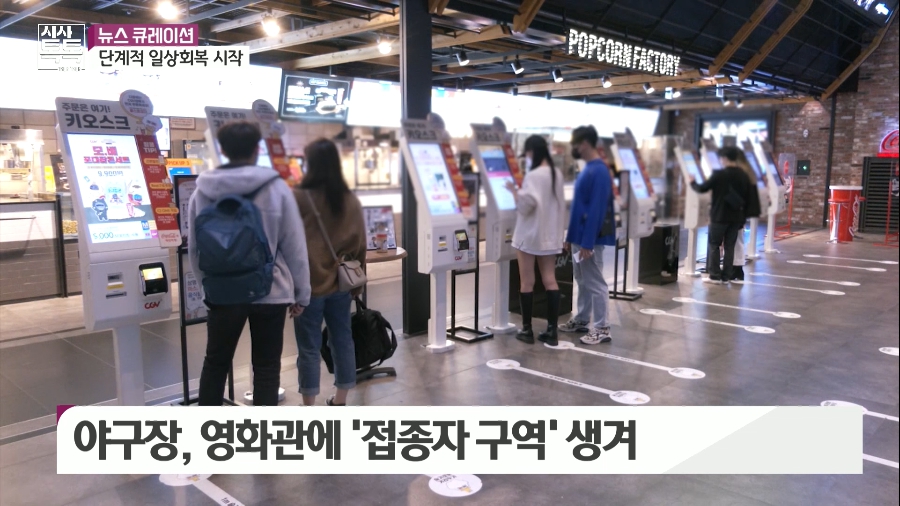 영화관에서도 접종자 구역이 생겨서 팝콘을 먹으면서 관람할 수 있게 됐습니다.