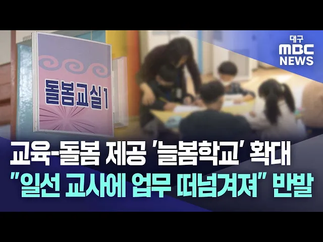 ◀앵커▶초등학생 학부모의 돌봄 부담을 덜기 위해 교육과 돌봄을 함께 제공하는 '늘봄학교'가 확대 운영됩니다. 늘봄학교 관련 업무는 교육청 중심으로 운영 체계를 구축해 교원 업무를 경감시킨다는 게 교육부의 방침입니다.그런데 대구의 교육 현장에서는 이런 방침과 달리 기존 교사에게 업무를 맡기면서 반발이 나오고 ...