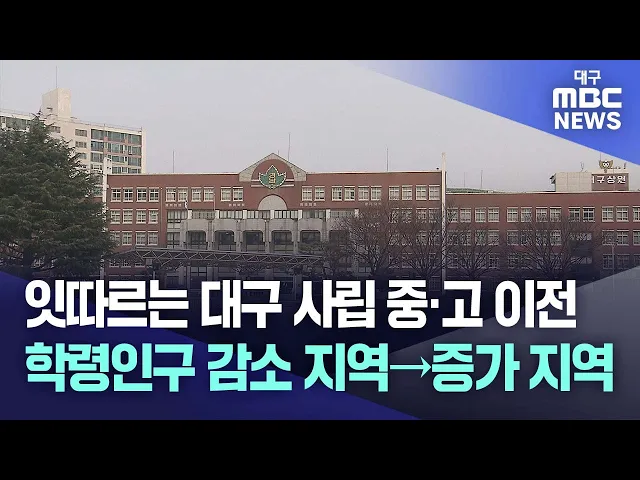 ◀앵커▶최근 대구지역 사립 중·고등학교 이전이 잇따르고 있습니다.학령인구 감소, 과밀학급 해소 등 외부적인 요인이 큽니다. 여기에 학교시설 노후화도 심각한 수준이어서 더 많은 학교가 옮길 수 있을 것이란 전망도 나옵니다. 이상원 기자가 보도합니다.◀기자▶대구 달서구 상인동에 있는 영남중·고등학교가 달서구 월...