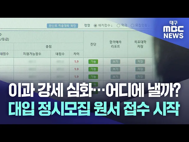 ◀앵커▶2024학년도 대입 정시모집 원서 접수가 1월 3일 시작됐습니다.3곳에 지원할 수 있는 정시모집은 수능시험 영향력이 절대적으로 커서 자신의 위치를 정확히 파악하는 것이 중요합니다.표준점수와 백분위, 과목별 유불리 등 어느 성적을 반영하는 대학이 더 유리한지도 꼼꼼히 따져야 하는데요, 자신에게 유리한 맞춤형...